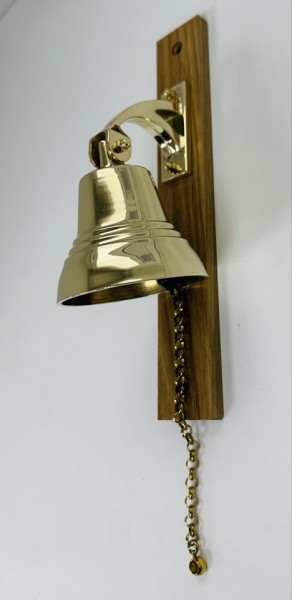 Колокольчик 7, с деревянной ручкой  Латунь, дерево. Диаметр 84, высота колокольчика 70, высота общая 190мм. Цена 3650руб. | Рында  Латунь, дерево. Размеры колокольчика:диаметр 69, высота 60мм. Размер держателя 225х35мм. Цена 3550руб. |